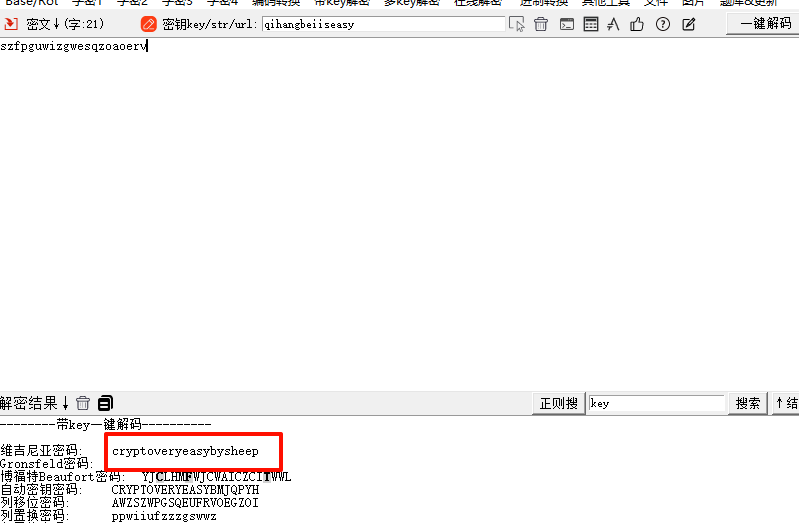 然后就是丢给随波逐流梭哈,发现维吉尼亚可以解出通顺的内容,这应该就是flag了(要注意补齐图片里最后的三个英文感叹号)